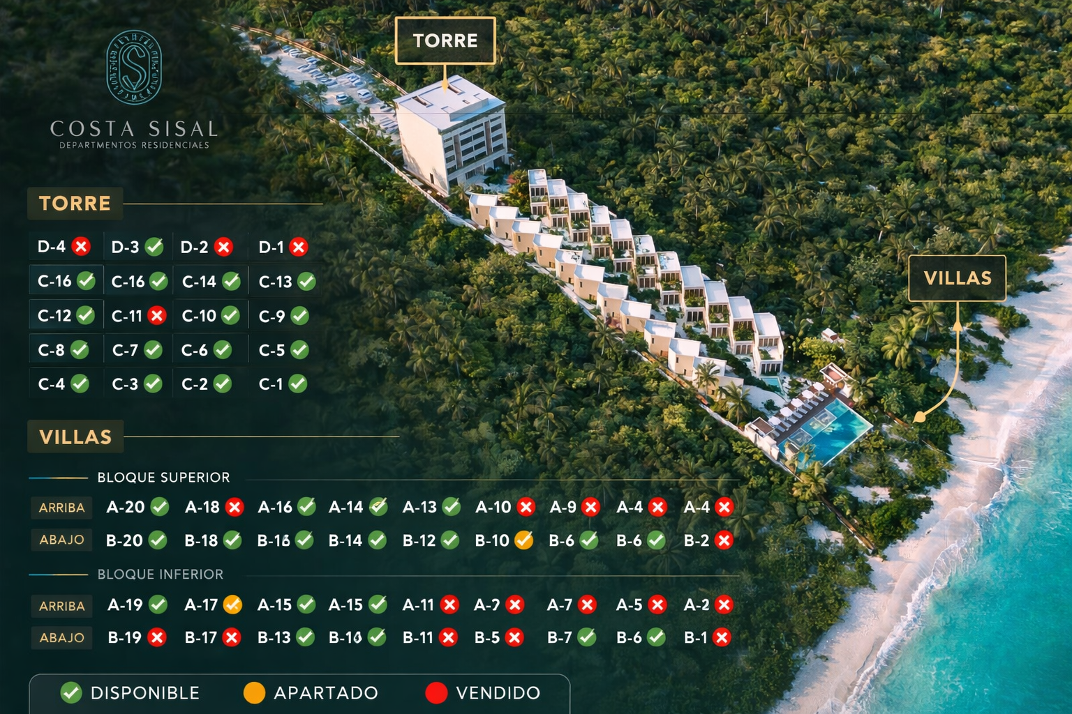 Apartamentos en venta en Sisal, Yucatán | disponibilidad e inventario Costa Sisal
