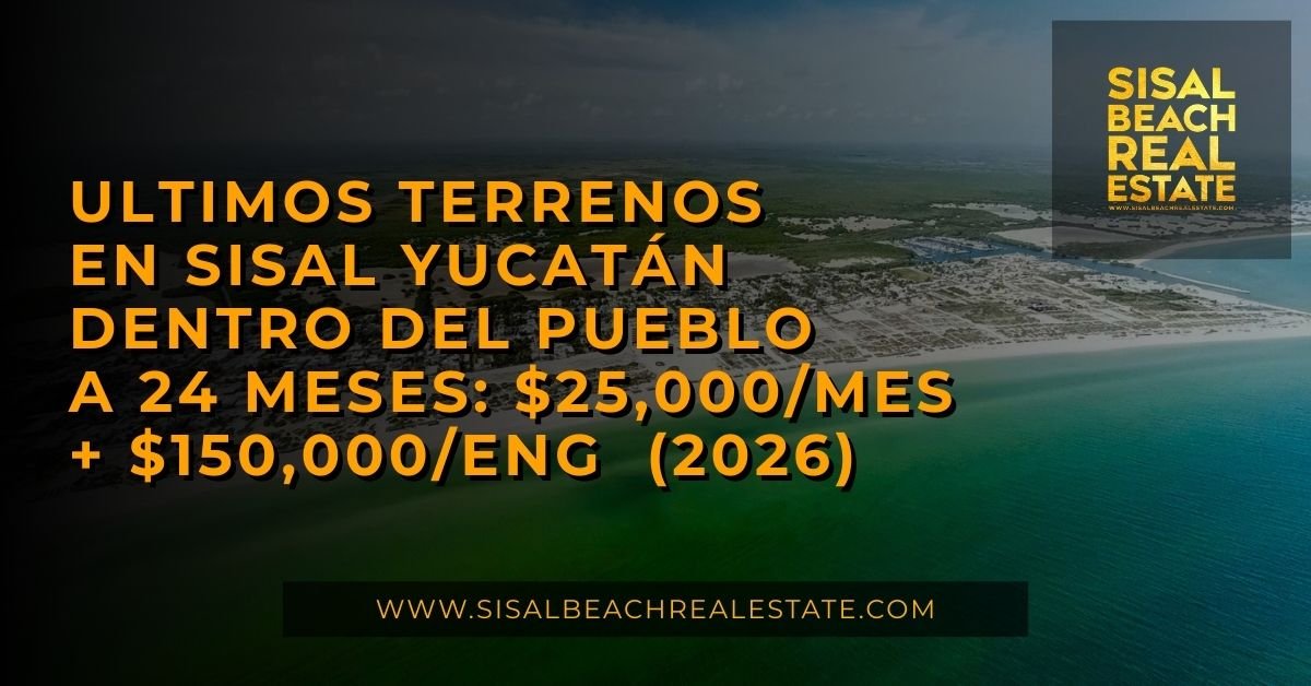 Ultimos terrenos en Sisal Yucatán dentro del pueblo a 24 meses: $150,000/eng + $25,000/mes (2026)